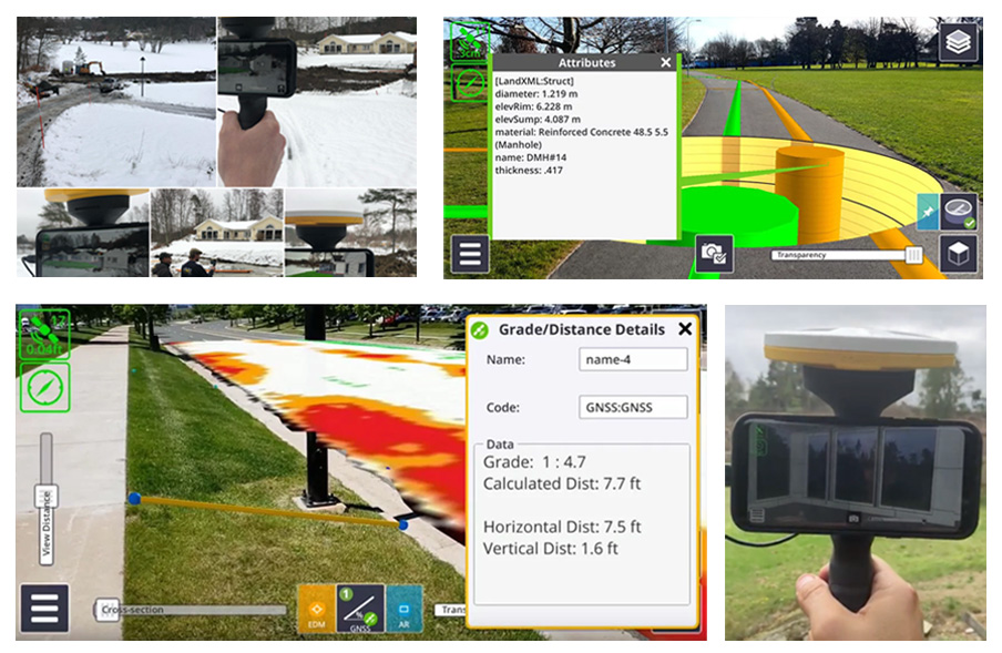 서울특별시 GNSS 네트워크 RTK 시스템은 증강 현실 (AR) 기술과 결합하여 건축, 토목, 시설물 유지관리 현장에서 등에서 활용될 수 있습니다. 최근 GNSS 데이터 처리 기술이 발전함에 따라, GNSS 신호를 소프트웨어적으로 처리할 수 있는 기술과 컴팩트한 GNSS 장비가 개발되어 시장에 출시되었습니다.